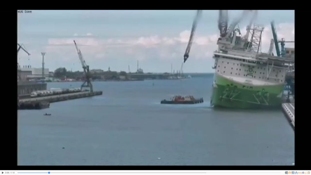 5月2日,比利时DEME公司旗下的风电安装船 Orion 1 在进行载荷测试时,吊机拦腰折断,事故导致船体受损,断裂的吊机由利勃海尔(Liebherr)提供。这一事故引发业内热议: crane-accident-during-overload-test-in-rostock
